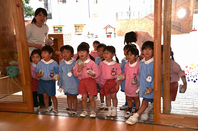 昨日、4歳児が園外保育に出掛けた丹嶺学苑研修センターのお土産を3歳児と5歳児に渡しました。