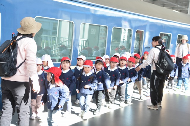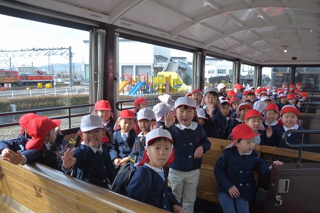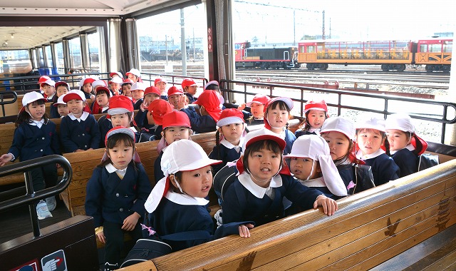 今年度、最後の全園児のお別れ遠足に、京都鉄道博物館に行きました。SL号に乗ったり、いろいろな列車を見て、大喜びの子ども達でした。全園児で出掛け、楽しい思い出がたくさんできた園外保育でした。