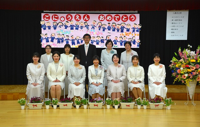 令和8年度 入園式を行いました。おうちの方と一緒に、嬉しかったり、少し心配だったりしている子ども達でした。欠席者がなく、全員の子ども達が参加して入園式を行うことができ、嬉しく思っています。明日から、どんな様子で登園してくるのでしょう。ご家庭の皆様と一緒に、子ども達の健やかな成長を願って保育を進めたいと考えています。どうぞよろしくお願いします。