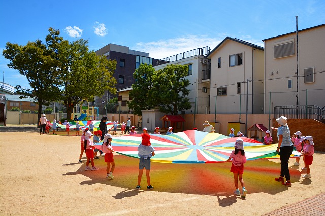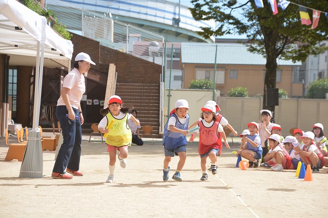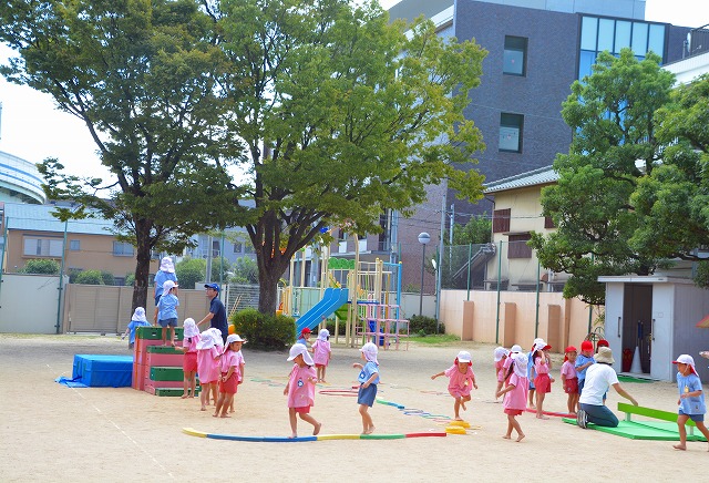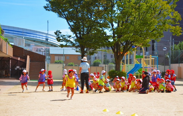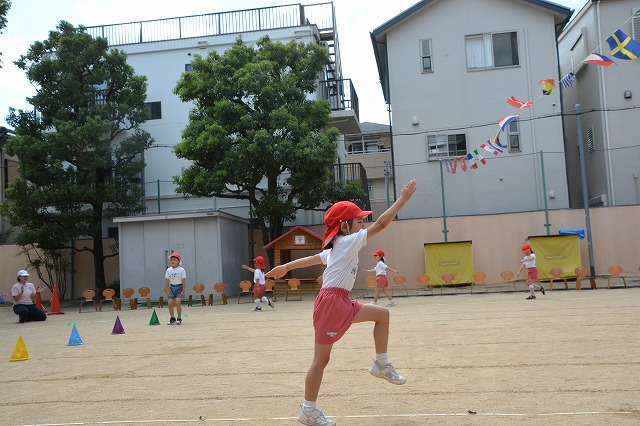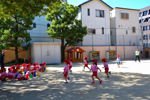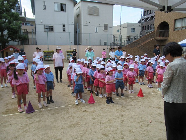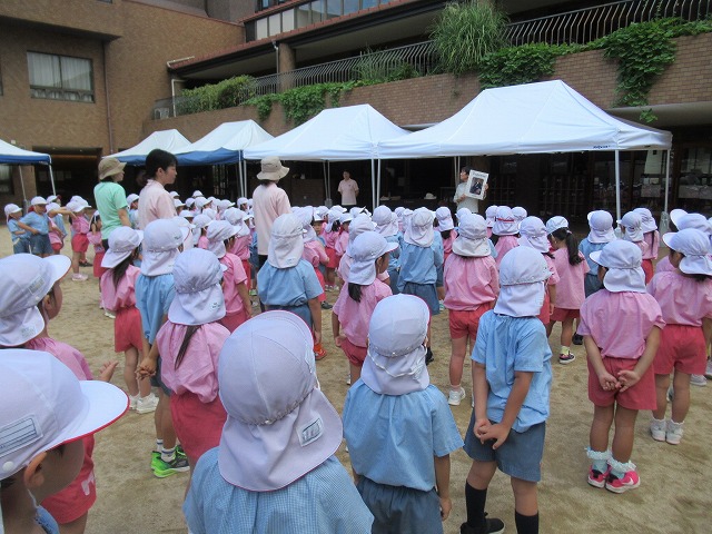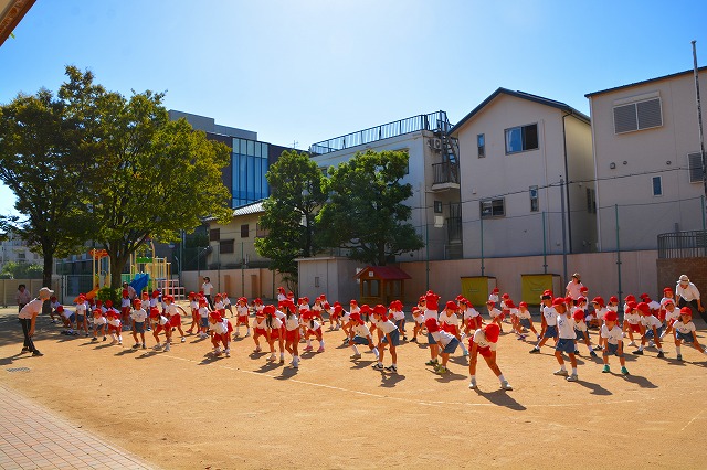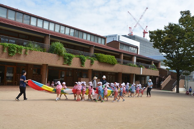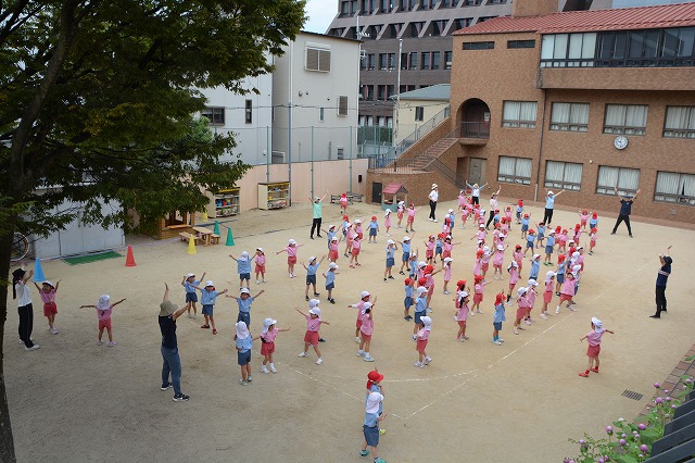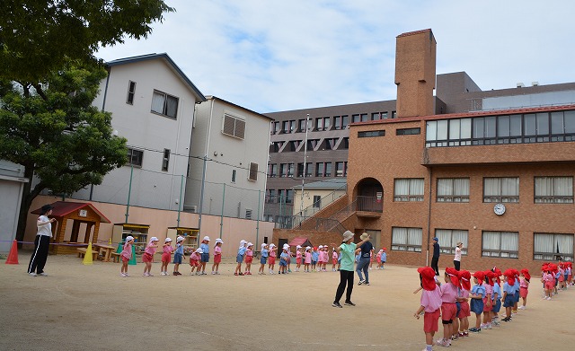 暑い日が続き、熱中症対策のため外で遊ぶことができない日が続いていました。今日は、朝から気温が少し下がり、熱中症警戒アラートも発令されていなかったため、学年ごとで園庭での運動遊びを楽しみました。広い園庭での遊びは楽しく、ニコニコ笑顔の子ども達でした。暑い中にも、季節は移り替わってきました。気温や体調に気を付けながら、遊びを進めていきたいと考えています。