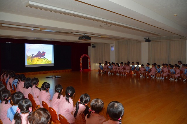暑さの中にも、ススキが穂をだし、園庭にはトンボが飛び交うようになってきました。誕生日の友達をお祝いする子どもたちの声や拍手が響きました。1年に一度の誕生日です。祝ってもらって嬉しい気持ちや祝おうという気持ちを大切にしていきたいと考えています。
