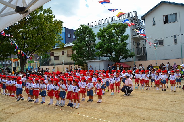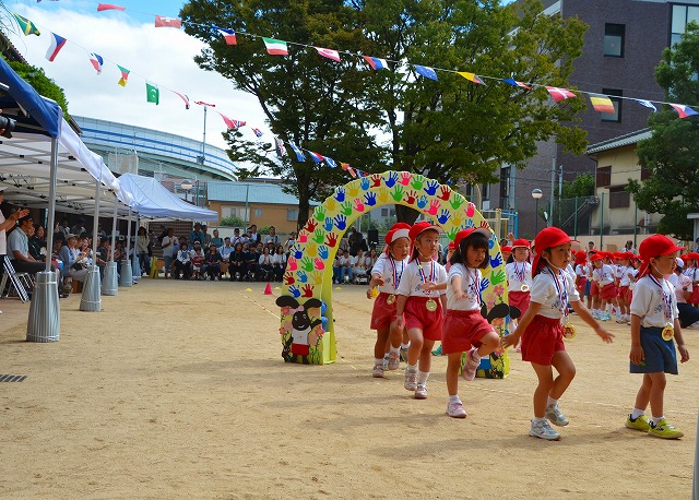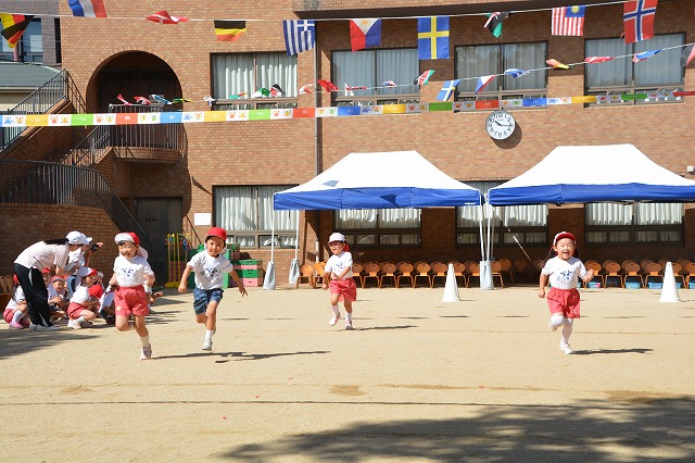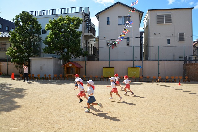 前日に雨が降り天気を心配しましたが、朝から良い天気に恵まれ、運動会を行うことができました。1人の欠席もなく、全園児が参加して行うことができたのも嬉しいことです。たくさんの温かいまなざしと拍手をいただいて、嬉しい気持ちが一杯の子ども達でした。