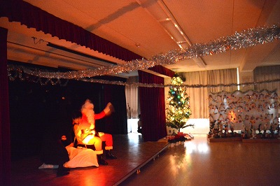 遊戯室を夜のように暗くして、サンタさんが来られるのを待ちました。