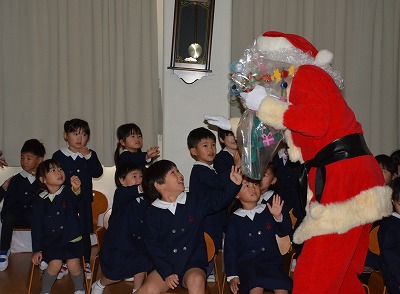 サンタさんが登場すると、すっかり夢心地です。幼児期ならではの、夢を大切にしたいと考えています。
