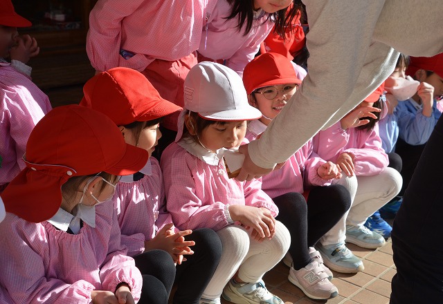 2月生まれの友達の誕生会をしました。冬から春へと季節が変わっていく2月です。祝ってもらって嬉しい誕生児と気持ちを合わせてお祝いをする子ども達でした。1年に一度の誕生日です。一つ大きくなって嬉しい気持ちを大切にしたいと考えています。