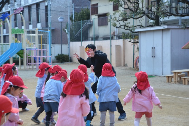 寒い日が続いていますが、外遊びが大好きな子ども達は、園庭で元気いっぱい遊んでいます。寒さに負けずに、外遊びも楽しんでいきたいと思います。