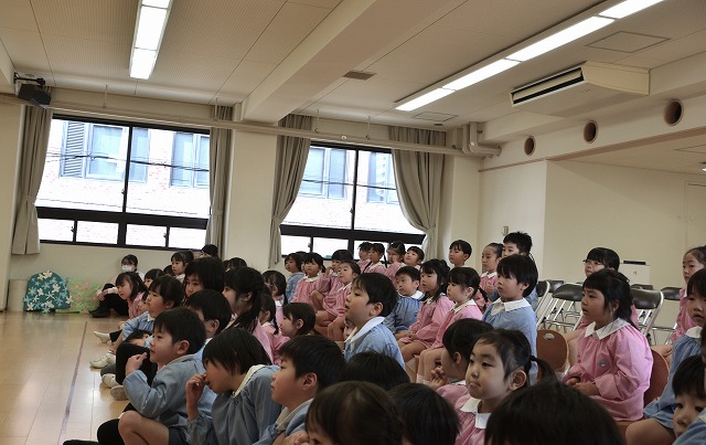 12月生まれと5歳児の11月生まれの友達(11月に5歳児が学年閉鎖をしていたため)の誕生会を行いました。いつもよりたくさんの友達の誕生会となりましたが、みんなで気持ちを合わせてお祝いをしました。1年に一度の誕生会です。祝って嬉しい気持ちやお祝をしようという気持ちを大切にしていきたいと考えています。